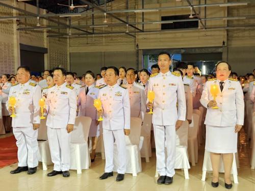 -พิธีถวายเครื่องราชสักการะและวางพานพุ่มและพิธีจุดเทียนถวายพระพรชัยมงคล โดยประธานในพิธีวางพานพุ่มเงิน พานพุ่มทอง หน้าพระฉายาลักษณ์สมเด็จพระเจ้าอยู่หัว ถวายธูปเทียนแพ (เปิดกรวยกระทงดอกไม้) จุดเทียนถวายพระพรชัยมงคล กล่าวกราบบังคมทูลถวายพระพรชัยมงคลและกล่าวนำผู้ร่วมพิธีถวายพระพรชัยมงคล ผู้ร่วมพิธีจุดเทียนถวายพระพรชัยมงคล ละร่วมร้องเพลง “สดุดีจอมราชา”